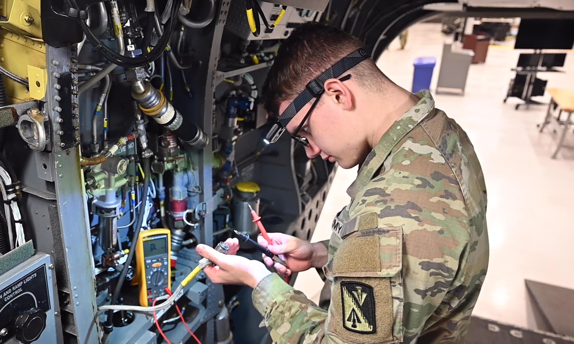The students then transition to hands-on training where they primarily work on simulators for the Boeing CH-47 Chinook helicopters and Sikorsky UH-60 Black Hawk helicopters. This type of training brings together the science they learned, the tools they’ll use, and place them in their future environments.