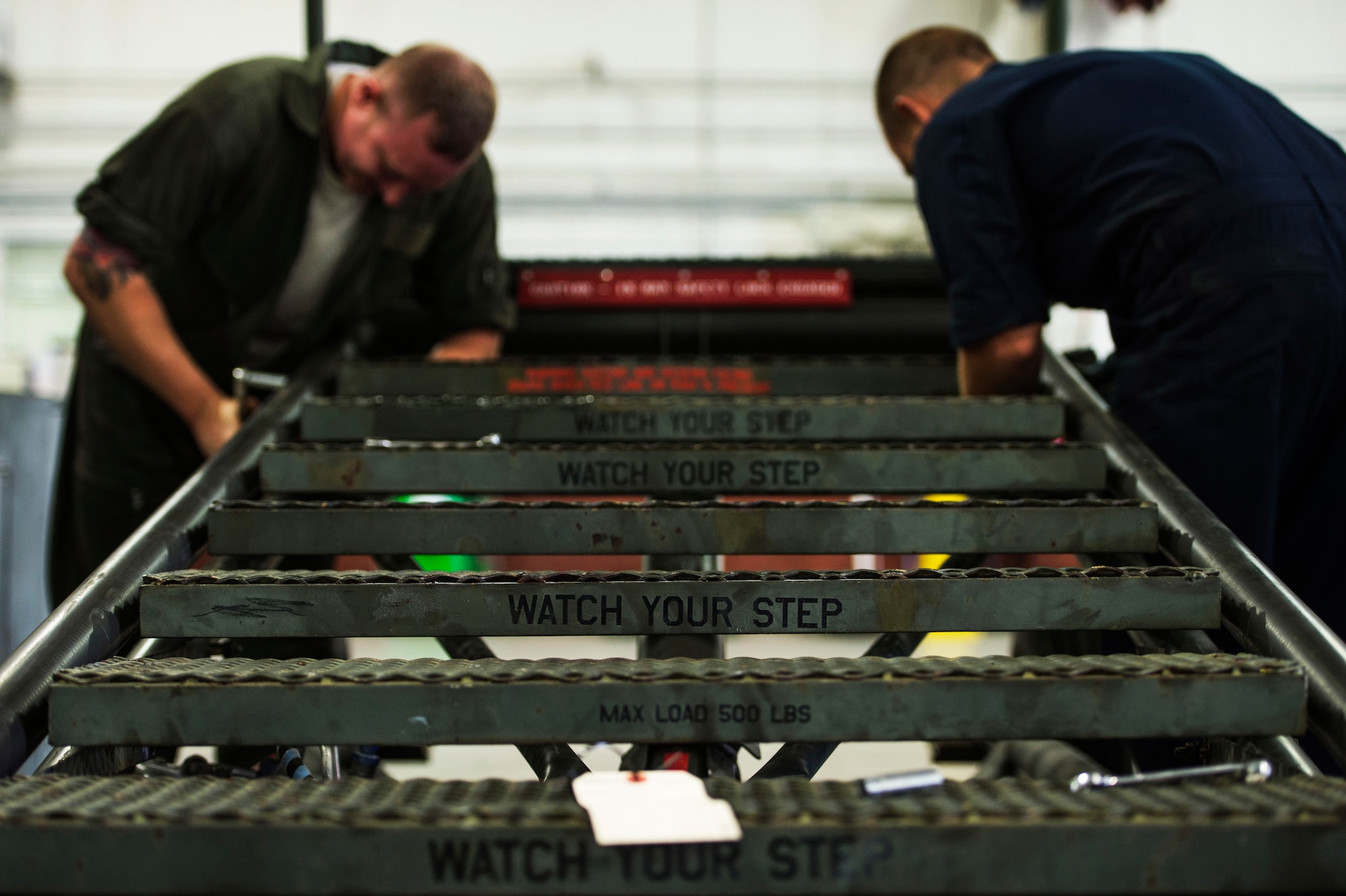 U.S. Air Force Senior Airman Dustin Edgell, 1st Maintenance Squadron aerospace ground equipment journeyman, prepares to conduct an annual Phase II inspection on a self-generating nitrogen cart at Langley Air Force Base, Virginia, Sept. 9, 2015. The AGE flight technicians are skilled in the principles of electronics, refrigeration, hydraulics, power generation, reciprocating engines, gas turbine engines, and pneumatics and heating. (U.S. Air Force photo by Senior Airman Kayla Newman)