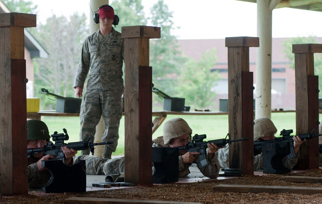 U.S. Air Force Staff Sgt. Patrick McCoy, 633rd Security Forces Squadron Combat Arms instructor, observes students during the M-4 Carbine course at Langley Air Force Base, Va., Aug. 28, 2012. McCoy assisted students throughout the course to ensure proper qualification. (U.S. Air Force photo by Senior Airman Stephanie Rubi/Released)