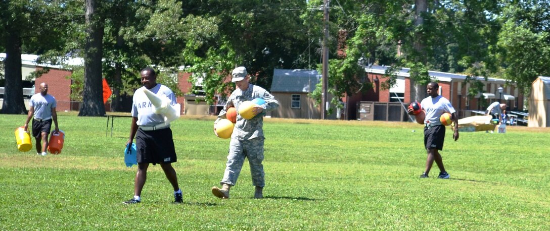 Soldiers from the 7th Sustainment Brigade here, put away games and activities during General Stanford Elementary School's field day at Ft. Eustis, Va., June 7, 2012. The school has a field day at the end of each school year to allow the students a chance to enjoy themselves, stay active and encourage physical fitness. (U.S. Army photo by Spc. Ondirae H. Abdullah-Robinson/Released)