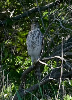 A Cooper's Hawk perches in a tree May 12, 2012, at Langley Air Force Base, Va. The Cooper's Hawk's population is “uncommon to rare,” but has steadily increased after its lowest population in the 1970's. Bird watches observed 61 different species throughout the base during the 2012 Spring Bird Count. (U.S. Air Force Photo by Senior Airman Stephanie Rubi / Released)
