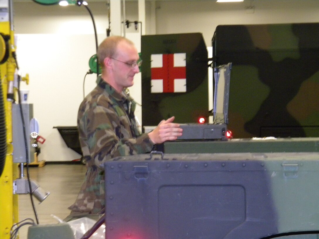 U.S. Army Spc. Vince Driver, 7th Sustainment Brigade wheeled vehicle mechanic, uses a new, electronic operator’s manual for a High Mobility Multi Wheeled Vehicle at AM General's Research and Development plant in Livonia, Mich., in December 2011. Soldiers took part in a vehicle maintenance upgrade program that will improve the process for years to come. (Courtesy photo)