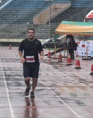 U.S. Air Force Staff Sgt. Mauricio Pasquale, 633rd Medical Operations Squadron medical technician, finishes the first Liberian Marathon Aug. 28, 2011, with a time of 5 hours, 13 minutes. Pasquale is deployed to West Africa as part of Operation Onward Liberty. (Courtesy photo)