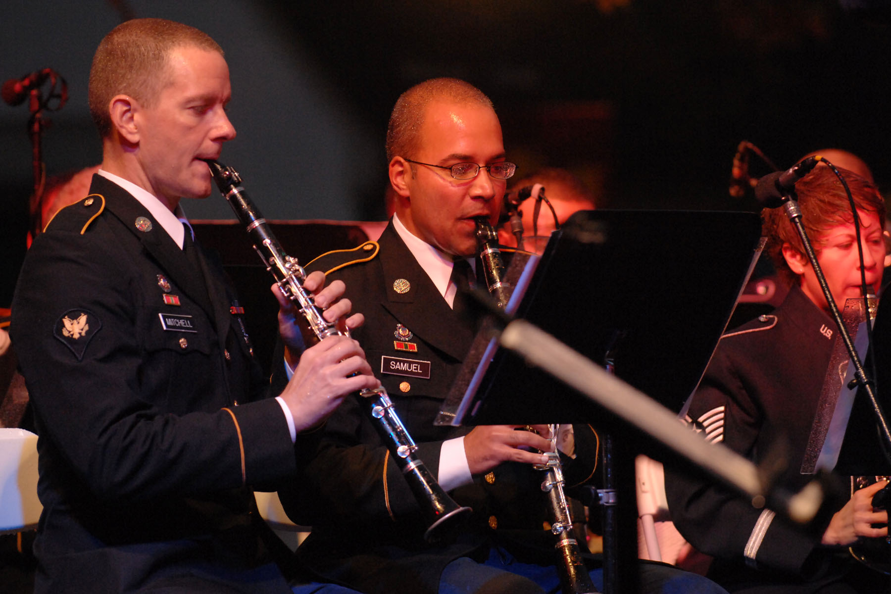 Members of the United States Army Training and Doctrine Command band from Fort Eustis, Va., and members of the United States Air Force Heritage of America band from Langley Air Force Base, Va., perform the national anthem for spectators during a concert for Constitution Day in Colonial Williamsburg, Va., Sept. 18, 2011. Constitution Day marks the anniversary of the signing of the Constitution of the United States 224 years ago. (United States Air Force photo by Staff Sgt. Jeff Nevison/Released)