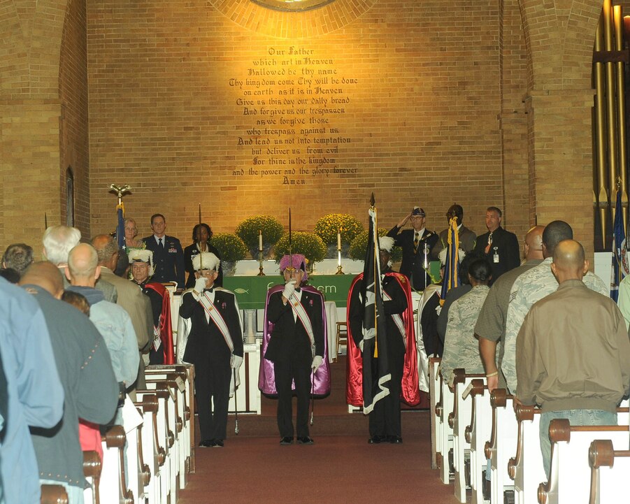 The Knights of Columbus present the colors during the National POW/MIA Recognition Day ceremony September 16, 2011, at Franklin Murphy Chapel at the Hampton Veteran’s Affairs Medical Center. The POW/MIA Recognition Day ceremony was one of a series of events where the Langley community paid respects to those who made, and continue to make, the ultimate sacrifice. (U.S. Air Force photo by Staff Sgt. Antoinette Gibson/Released)