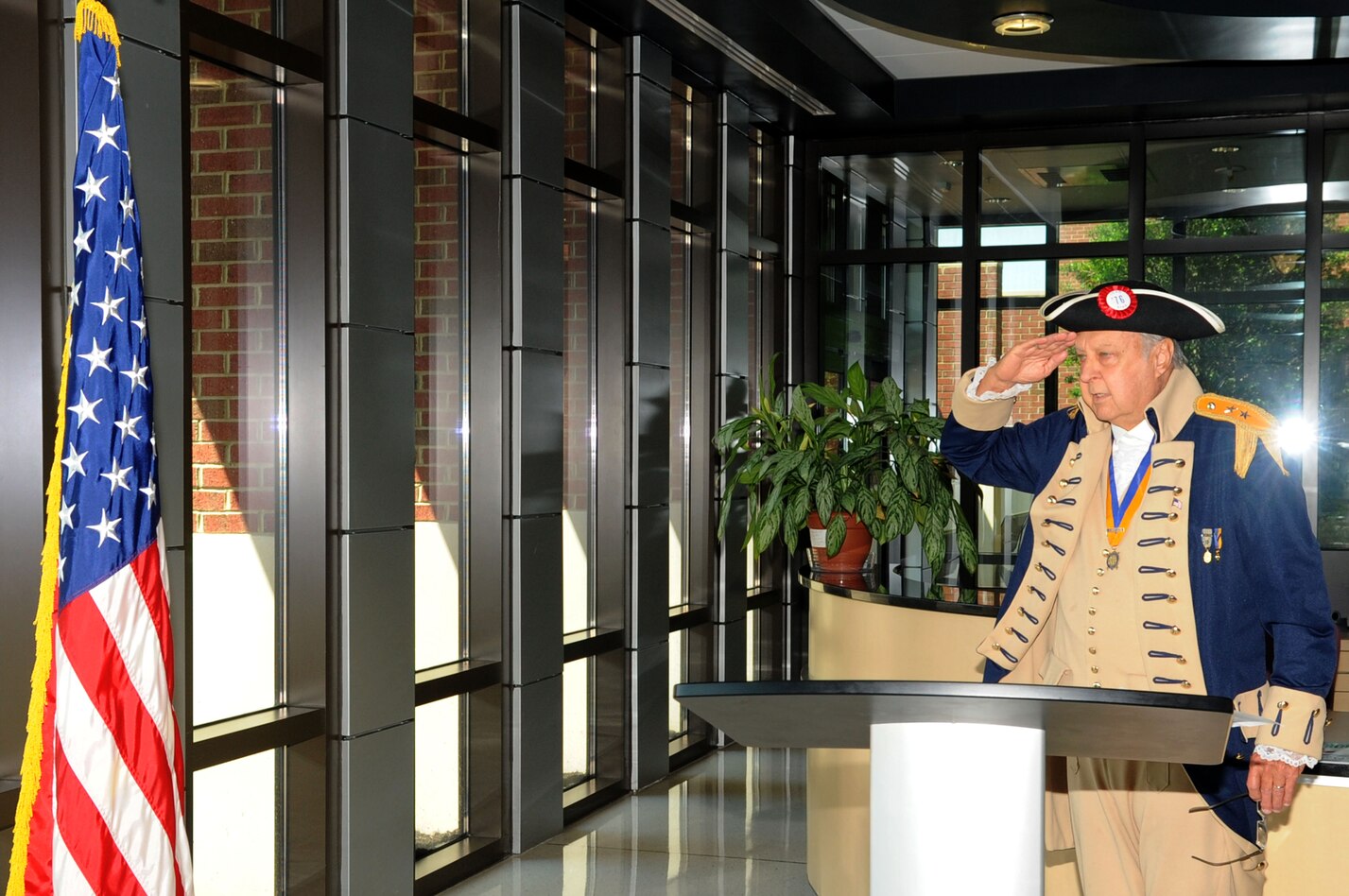 Retired U.S. Air Force Maj. Frank Jackson, Heroes of ‘76 member, salutes the flag during the “Old Glory Speaks” program, honoring Flag Day at Langley Air Force Base, Va., June 14, 2011. Flag Day commemorates the adoption of the flag of the United States by the resolution of the Second Continental Congress in 1777. (U.S. Air Force photo by Airman 1st Class Racheal Watson/Released)