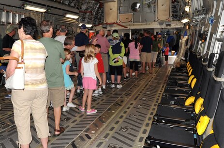 Spectators wait in line to see the cockpit of a C-17 Globermaster III during the AirPower over Hampton Roads open house at Langley Air Force Base, Va., May 15, 2011. The open house educates the public on past and present military aerial capabilities, increases recruiting and shows appreciation to the local community. (U.S. Air Force photo by Airman 1st Class Camilla Griffin/RELEASED)