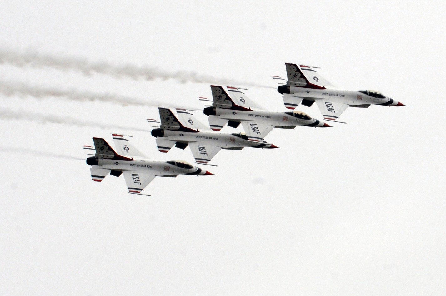 The U.S. Air Force Air Demonstration Squadron, the Thunderbirds, perform aerial demonstrations during the AirPower over Hampton Roads open house at Langley Air Force Base, Va., May 13, 2011. The open house educates the public about Air Force capabilities and shows appreciation to the local community. (U.S. Air Force photo by Staff Sgt. Jeff Nevison)(RELEASED)
