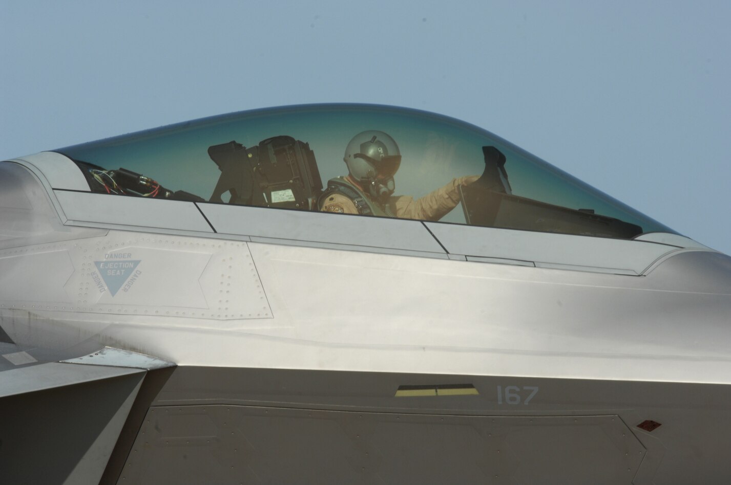 Lt. Col. Bryan Salmon, 149th Fighter Squadron, readies an F-22 Raptor for taxiing during an Operational Readiness Inspection at Langley Air Force Base, Va., April 10, 2011. The inspection evaluates an installation’s ability to efficiently deploy military members, cargo and equipment while adjusting to rapidly changing security conditions. (U.S. Air Force Photo/Airman 1st Class Teresa Zimmerman/Released)