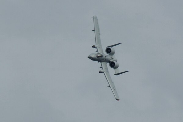 LANGLEY AIR FORCE BASE, Va. – Maj. Dylan Thorpe, A-10 East Demonstration Team flying officer, showcases the aircraft’s maneuverability at low altitudes Feb. 2, during an annual Air Combat Command certification. The short takeoff and landing capabilities of the A-10 allow operations in and out of frontline locations. (U.S. Air Force photo/Airman 1st Class Racheal Watson)(RELEASED)