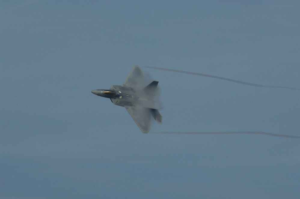 LANGLEY AIR FORCE BASE, Va. – The Air Combat Command F-22 Demonstration Team pilot Maj. Henry Schantz showcases the aircraft’s diverse aerial capability Feb. 1. The F-22 Raptor is fifth generation aircraft with unmatchable maneuverability, stealth and integrated avionics. (U.S. Air Force photo/Airman 1st Class Racheal Watson)(RELEASED)