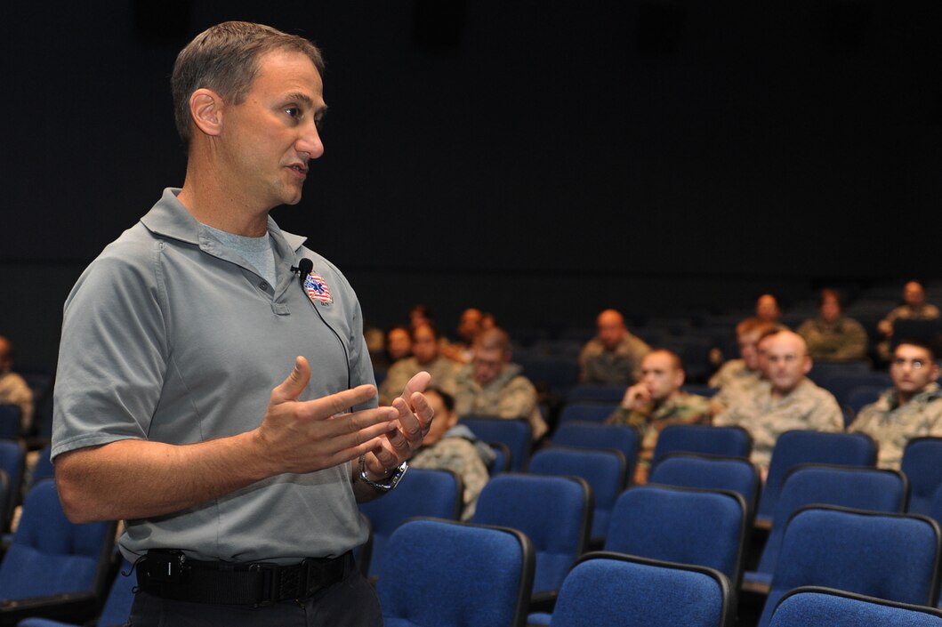 LANGLEY AIR FORCE BASE, Va. – Vince Easevoli, firefighter/paramedic, talks to Airmen at Langley Air Force Base about how to help prevent dangerous decision making while operating a motor vehicle Dec. 9. Mr. Easevoli created the Florida S.A.F.E. (Stay Alive From Education) Inc., a international non-profit organization dedicated to making teens and military personnel aware of the consequences of driving under the influence, illegal drug use, non-compliance of seat belts, and the trauma associated with these dangers. (U.S. Air Force photo/Senior Airman Brian Ybarbo)(RELEASED)