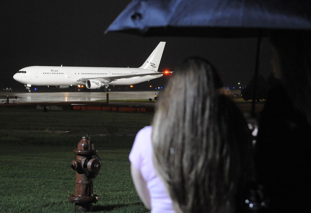 LANGLEY AIR FORCE BASE, Va. -- Family and friends gather to welcome loved ones home from a deployment Oct. 4. Team Langley Airmen supported the first-ever F-22 Raptor deployment to Andersen Air Force Base, Guam in support of the Pacific Theater Security Package to ensure stability in the region. (U.S. Air Force Photo/Staff Sgt. Christina M. Styer) (RELEASED)