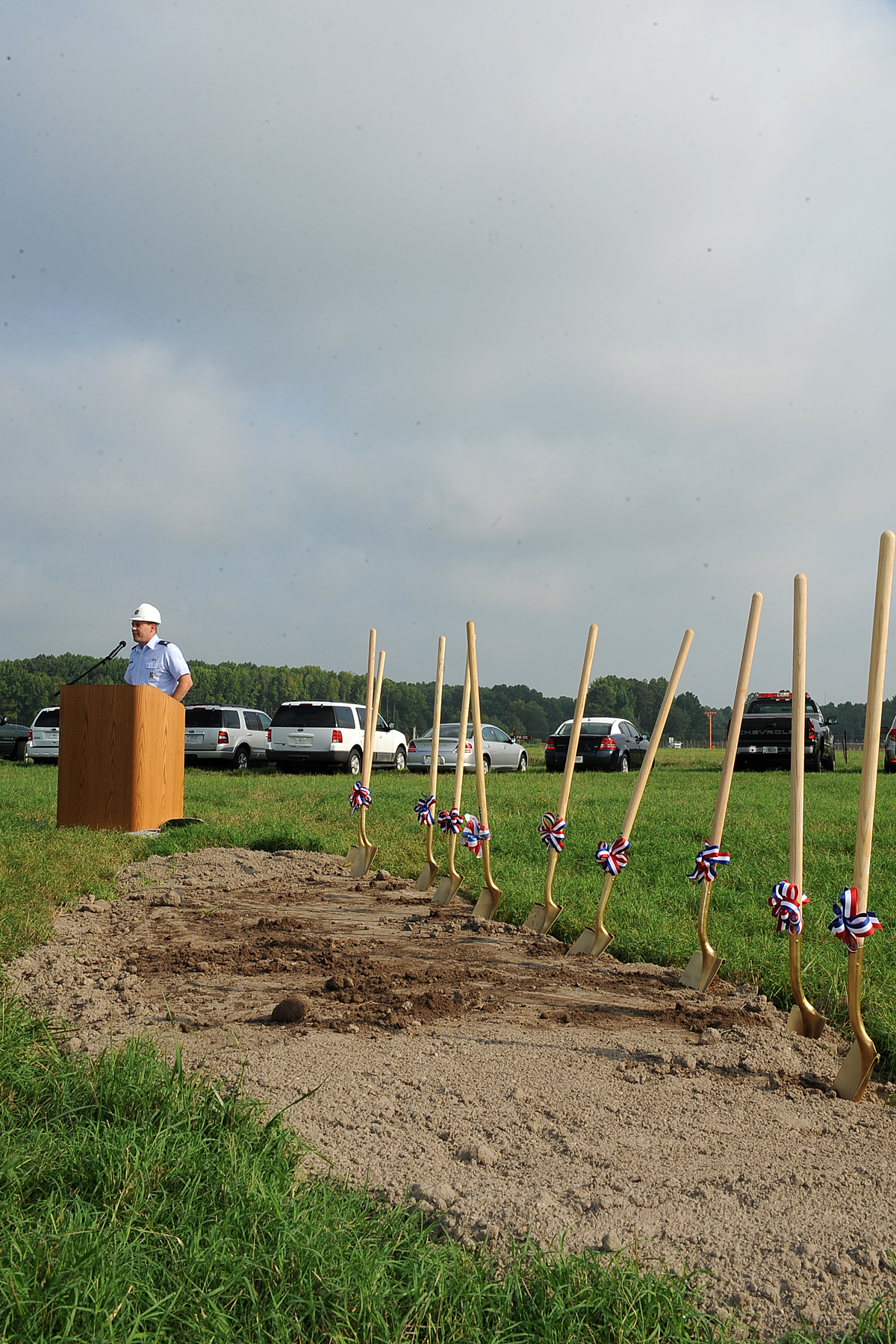 LANGLEY AIR FORCE BASE, Va. -- Lt. Col. Jeffrey Ullmann, 633d Civil Engineer Squadron commander, speaks to the audience during the ground breaking ceremony Aug. 9. The ceremony was held for a $ 7.2 million state of the art, large vehicle inspection station near the Armistead Gate. (U.S. Air Force photo/Senior Airman Gul Crockett)