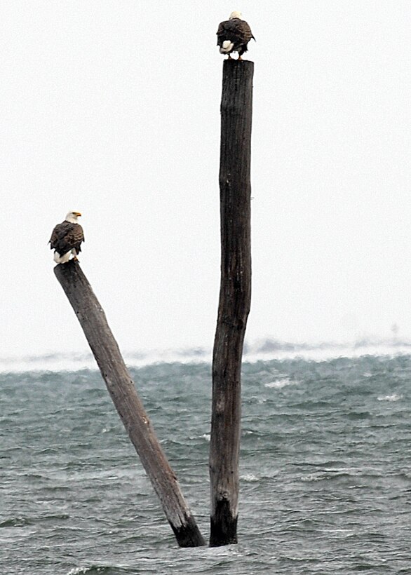 LANGLEY AIR FORCE BASE, Va. -- A record total of three bald eagles were spotted on this year’s winter bird count. For many years, none were seen on base. One was spotted in 1998, and solo eagles have been seen sporadically since then. Volunteers conduct bird counts each winter and spring on Langley. The data, collected since 1985, is provided to the 1st Civil Engineer Squadron’s Environmental Flight and the Bird Aircraft Strike Hazard team. This gives data points, essentially snapshots in time, which show significant trends occurring at the base. (U.S. Air Force photo/Airman 1st Class Zachary Wolf)