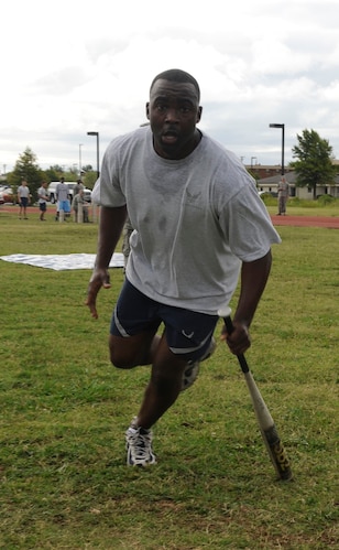 LANGLEY AIR FORCE BASE, Va. -- Senior Airman Ramar Sykes, 735th Supply Chain Management Group stock control technician, participates in a five-on-five friendly competition during the Airmen Committed to Excellence and Chiefs Day here July 23. Air Combat Command and the 1st Fighter Wing came together to participate in a fun day of mentoring Airman. (U.S. Air Force Photo/Senior Airman Dana Hill)