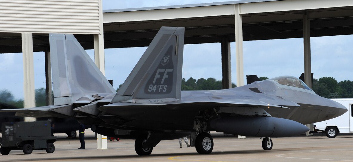 LANGLEY AIR FORCE BASE, Va. – An F-22A Raptor from the 94th Fighter Squadron taxis in preparation for departure to Kadena Air Base, Japan, May 26. More than 280 Langley Airmen and 12 F-22A Raptors depart this week for their Air Expeditionary Force deployment, which demonstrates the continued U.S. commitment to fulfill its security responsibilities throughout the Western Pacific. This is the first overseas deployment for the 94th Fighter Squadron since transitioning to the F-22. (U.S. photo/Senior Airman Zachary Wolf)