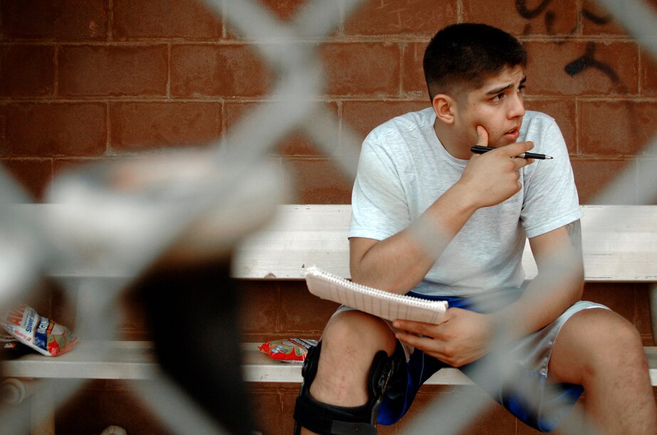 LANGLEY AIR FORCE BASE, Va. -- Senior Airman Ricardo Hernandez, 480th Intelligence Wing, records the score for softball game between the 480th Intelligence Wing and 1st Equipment Maintenance Squadron Aug. 26. Senior Airman Hernandez watched the 1st EMS defeat the 480th 12-6 in a double header that featured two other teams as the Langley softball season comes to a close. (U.S. Air Force photo/Senior Airman Vernon Young)