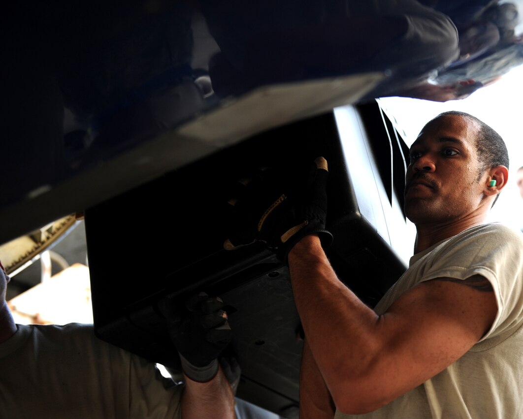 U.S Air Force Airman 1st Class Devin Teagle, 71st Aerial Port Squadron cargo apprentice, loads cargo onto an aircraft at Langley Air Force Base, Va., Aug. 11, 2013. Service members from the Joint Task Force Civil Support deployed to Camp Atterbury, Ind. to participate in a major joint field-training exercise that will evaluate the ability of JTF-CS and other Department of Defense entities to respond to a complex catastrophic event. (U.S. Air Force Photo by Airman 1st Class Kimberly Nagle/Released)