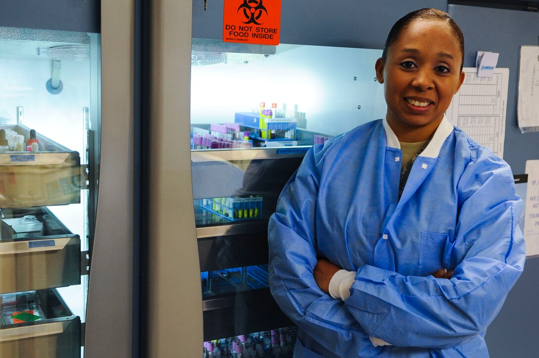 U.S. Air Force Capt. Nicole Ferguson, 633rd Medical Support Squadron laboratory officer, has been in the Air Force for six years, and has worked with blood, platelets and plasma at deployed locations and at Langley Air Force Base, Va. Women’s service in the U.S. military medical fields dates back to the birth of the nation when they worked as battlefield nurses during the American Revolution. (U.S. Air Force photo by Senior Airman Austin Harvill/Released)
