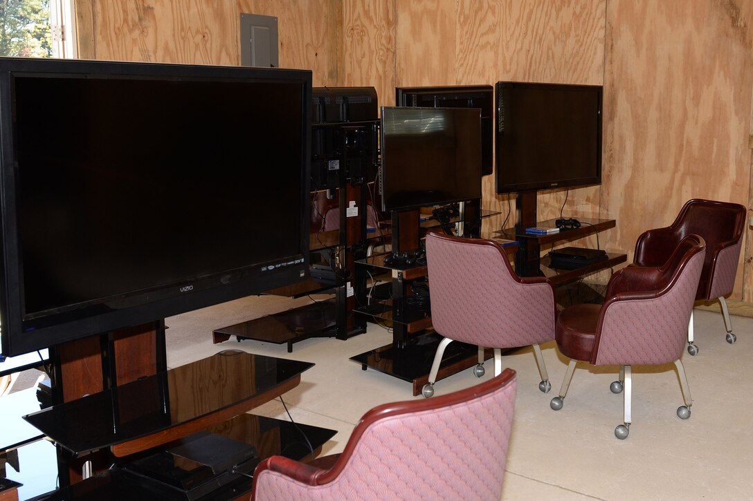 The Langley Transit Center’s entertainment and recreation room, known as ‘The Hub,’ shown here on Nov. 7, 2014, includes video game consoles, flat screen televisions, and computers with video-chat capabilities. In order to keep Service members connected to loved ones, technicians from the 633rd Air Base Wing built a Wi-Fi internet network servicing the entire transit center for them to tap into for communication and entertainment purposes. (U.S. Air Force photo by Staff Sgt. Teresa J. Cleveland/Released)