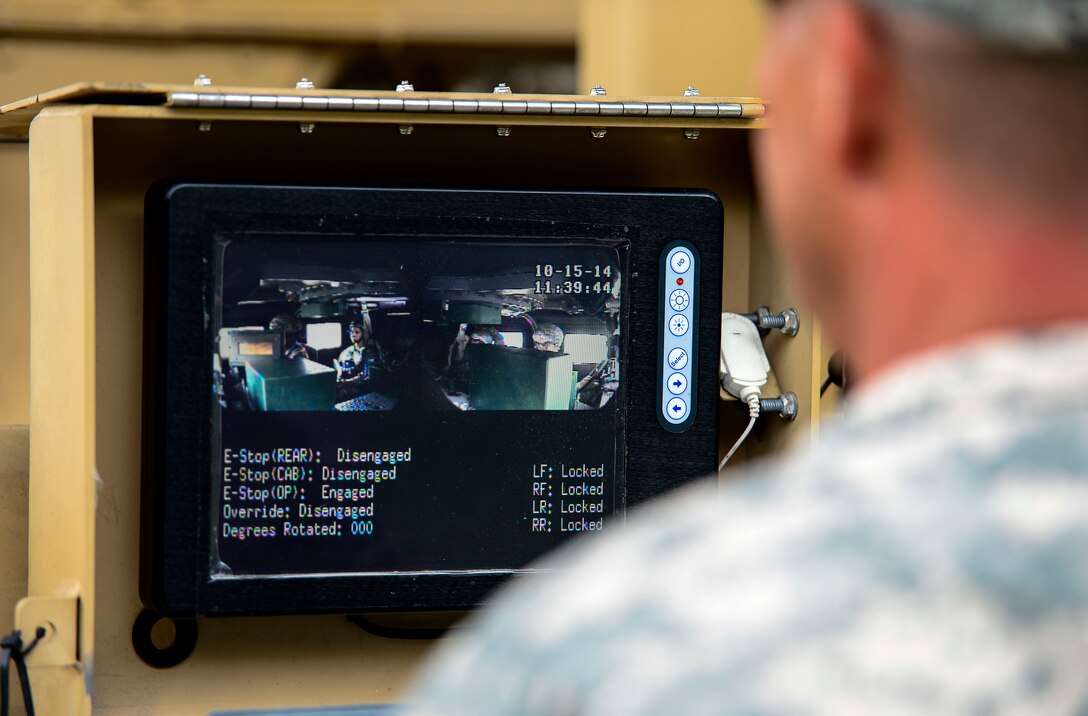 U.S. Army Staff Sgt. Edward Clarke, 53rd Transportation Battalion (Movement Control), 7th Transportation Brigade (Expeditionary) cargo specialist, monitors Soldiers as they perform Humvee rollover training at Fort Eustis, Va., Oct. 15, 2014. The training helps Soldiers prepare for the most difficult part of a vehicle rollover, which is safely exiting the vehicle while being disorientated and attending to possible injuries that can occur. (U.S. Air Force photo by Senior Airman Kayla Newman/Released)