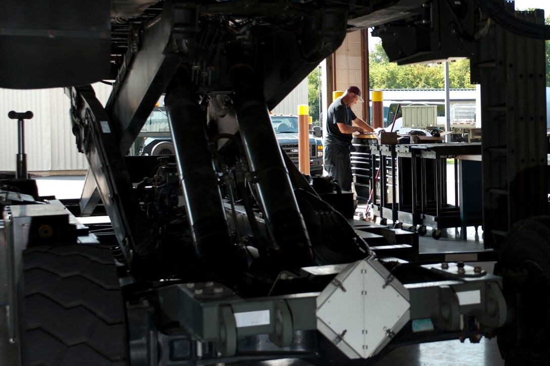 David Davidson, 633rd Logistics Readiness Squadron vehicle maintainer, reviews technical orders for a 25K loader at Langley Air Force Base, Va., Oct. 1, 2014. Davidson checked the orders after fixing the loader’s transport operation system. This system allows the vehicle to rise up to aircraft for loading and unloading materials. (U.S. Air Force photo by Staff Sgt. Natasha Stannard/Released)