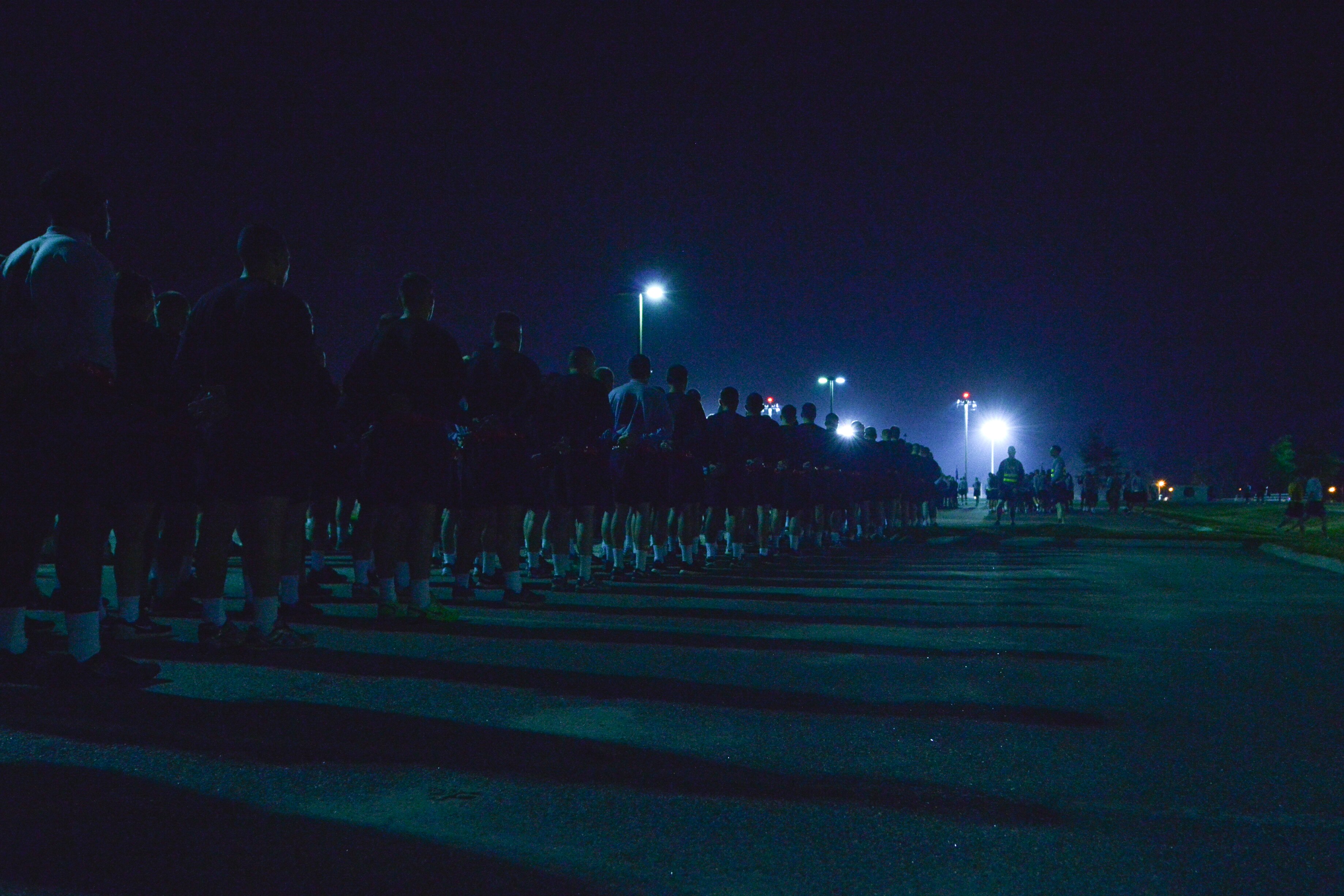 U.S. Service members prepare for a Domestic Violence Awareness Month run at Fort Eustis, Va., Oct. 23, 2015. The 2.2-mile run, along with other events, was conducted to bring awareness to the Joint Base Langley-Eustis, Va., populace as domestic violence affects the entire nation. (U.S. Air Force photo by Staff Sgt. Natasha Stannard/Released)
