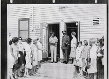Then U.S. Army Maj. Aaron M. Dotson, now a retired World War II and Vietnam War veteran, middle, cut the Fort Eustis Army Community Service (ACS) ceremonial opening ribbon at Fort Eustis, Va., August 29, 1967. Dotson stood up the Fort Eustis ACS, and regularly participates in ACS events to this day. (Courtesy photo)
