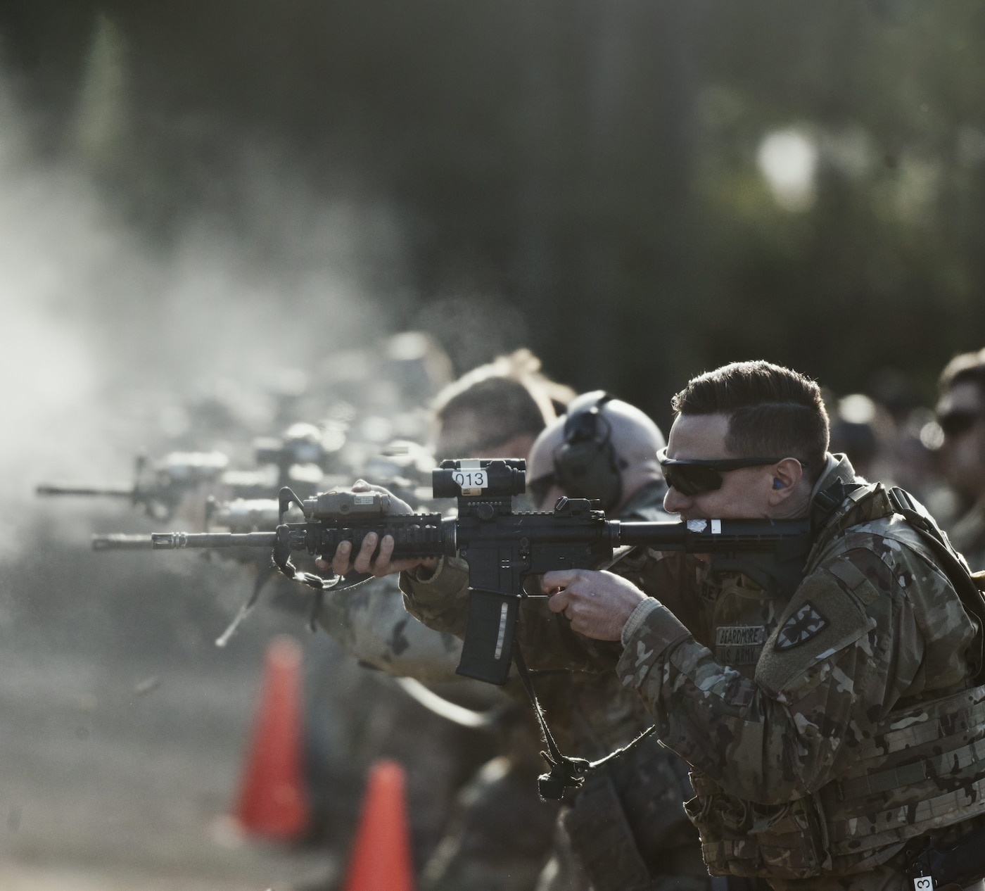 U.S. Army Sgt. Jacob Beardmore, 7th Transportation Brigade (Expeditionary), fires an M4 carbine during the Master Marksman Trainer Course at Joint Base Langley-Eustis, Virginia, Jan. 27, 2020. This scenario required the Soldiers to accurately fire 10 rounds in 10 seconds from 25 meters. (U.S. Army photo by Spc. Travis Teate)