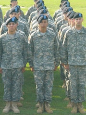 U.S. Army Private 1st Class Manuel Orriola (left) graduates from Basic Combat Training at Ft. Jackson, South Carolina, July 14, 2011. Orriola was enlisted for 10 years before becoming a warrant officer and later commissioning as second lieutenant in 2024. (U.S. Air Force courtesy photo)